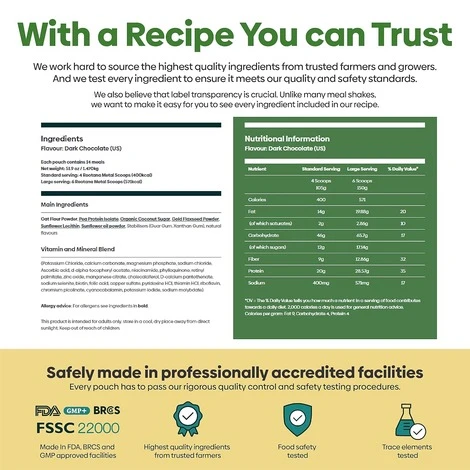- Nutrition label provides information for a “standard portion” and “large portion”